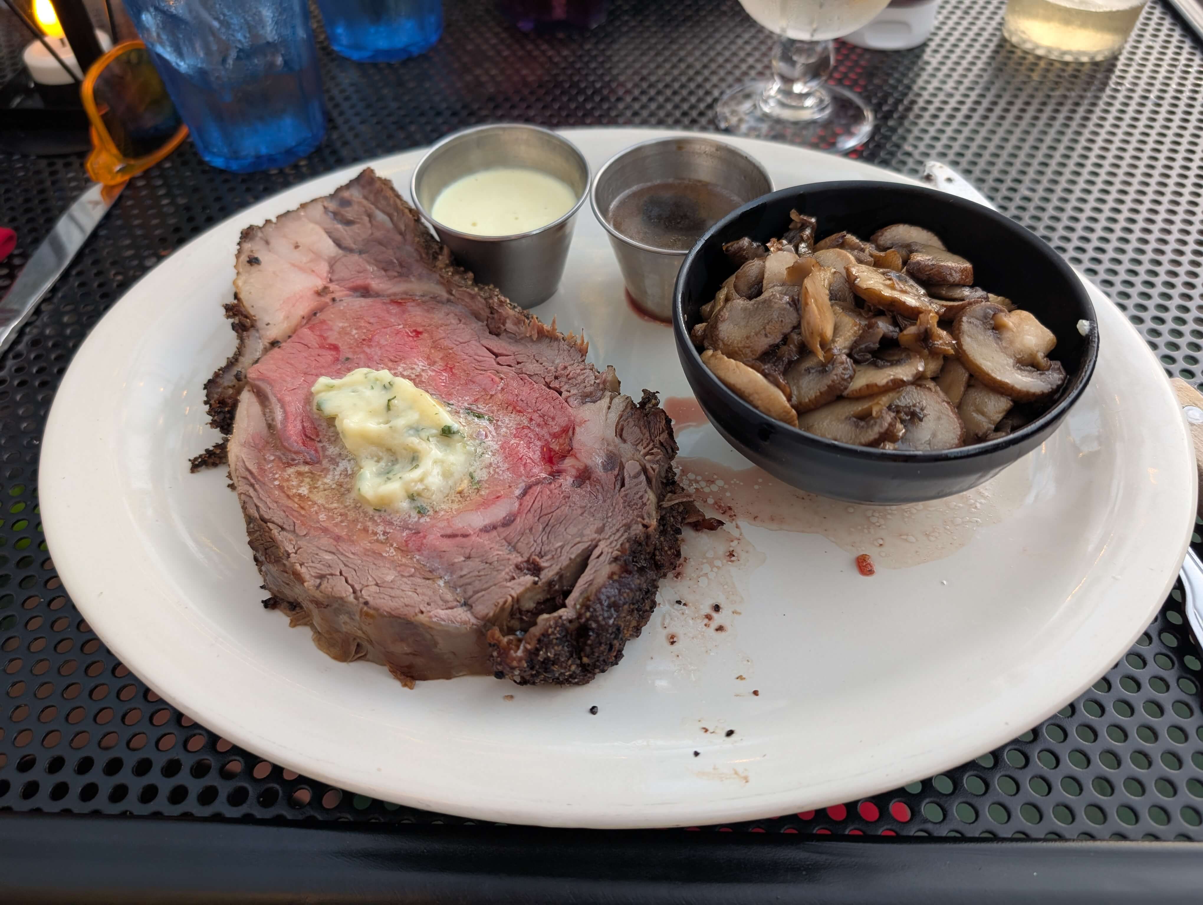 As we ended our festival visit we got a table at Harry's for some outdoor music and food/drink. As I reviewed the menu I knew I needed to get a prime rib after a day of sun and drinking. I can't turn down a chance to get a good ole prime rib - it reminds me of my days in Kansas with Outback Steakhouse.