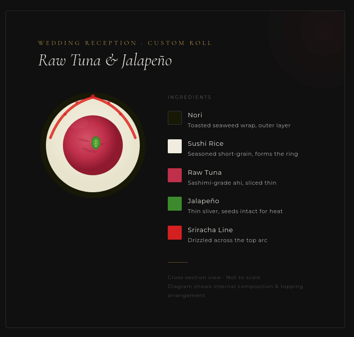 As our errands ended we went off to our wedding appointment and spent about an hour and half going through the details, vendors and learning more about the hotel in preparation for our wedding. As we solidified our dining options I was happy to learn we get to design our own sushi rolls for the sushi station. The caveat was the rolls have to be pretty basic so anything that was a "specialty" roll at a restaurant was probably not in the books.
